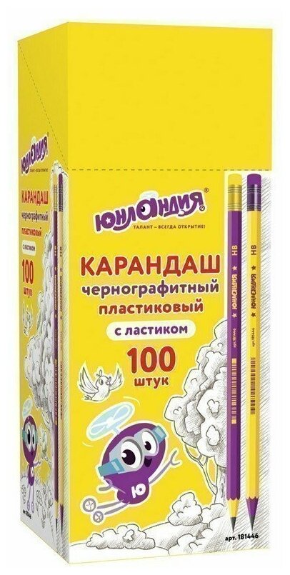Карандаш ч/г юнландия, 1 шт, НВ, пластиковый, корпус ассорти, с резинкой, 181446 интересное: