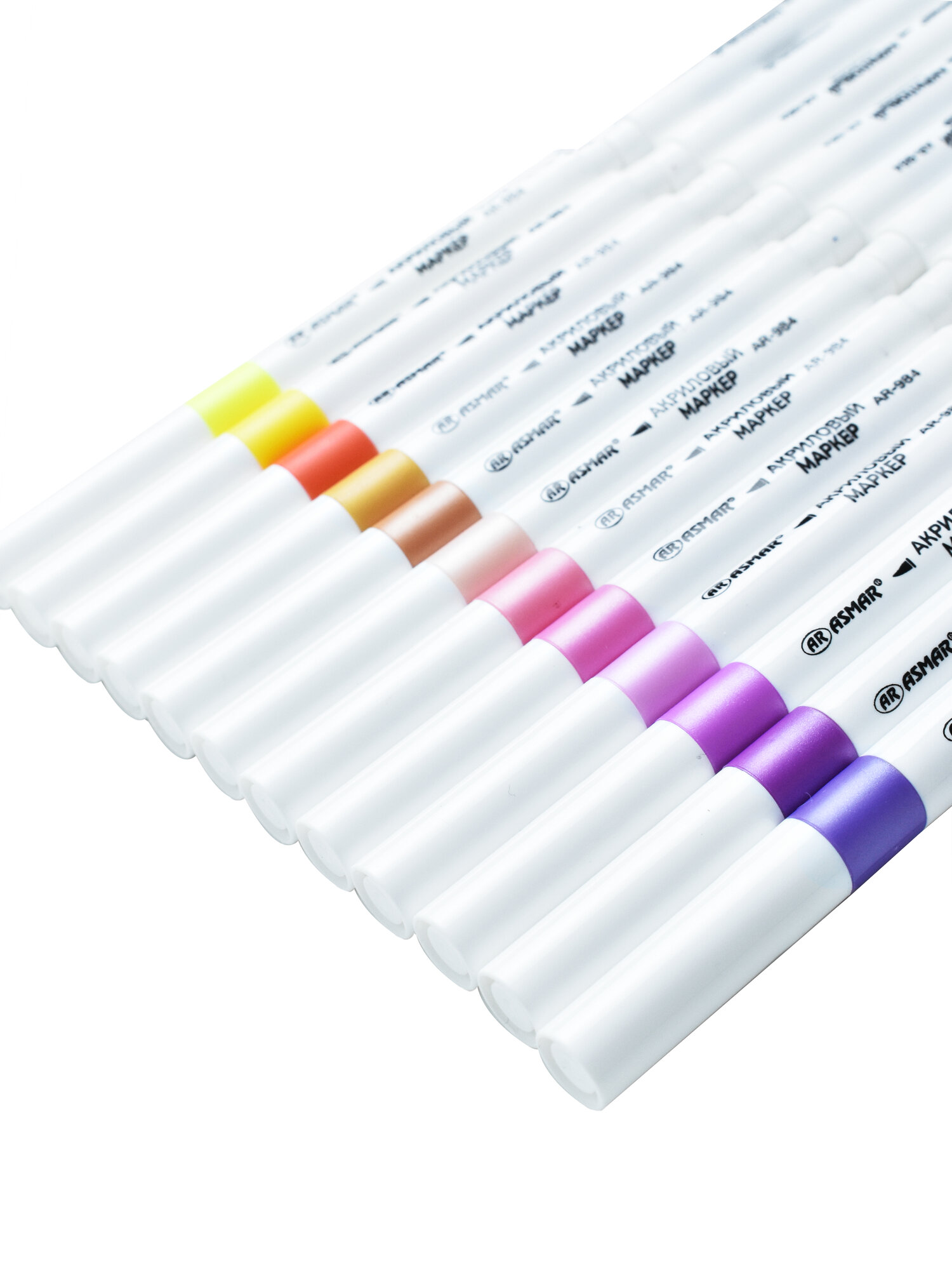 Маркеры акриловые для рисования ASMAR, пулевидный наконечник, 12 цветов, для любых поверхностей