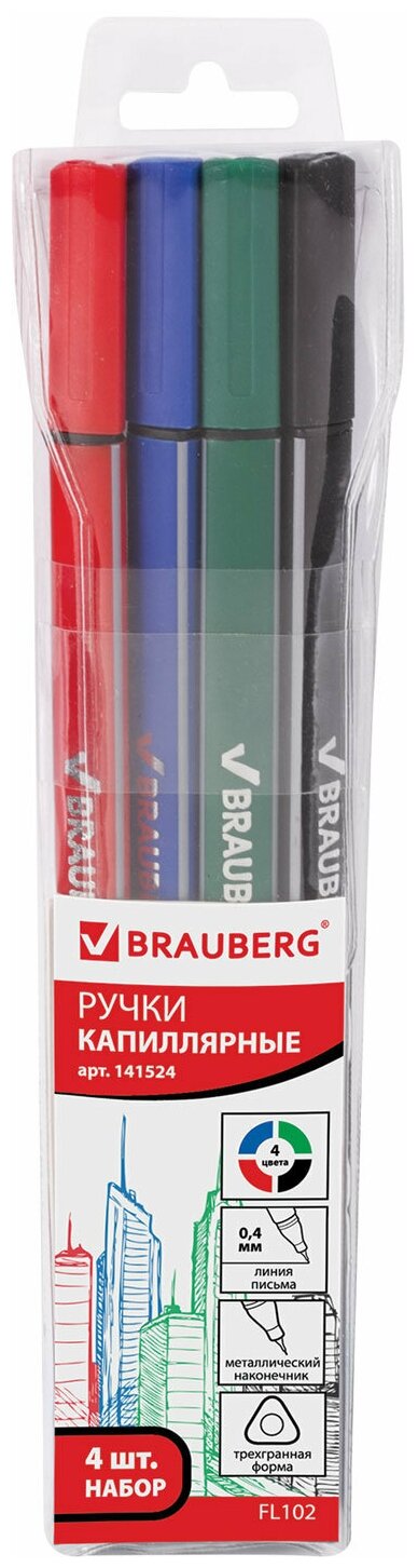 Линеры (капиллярные ручки) для письма и рисования, скетчинга Brauberg 4 шт, Ассорти, Aero, трехгранные, металлический наконечник, линия письма 0,4 мм, 141524 интересное: