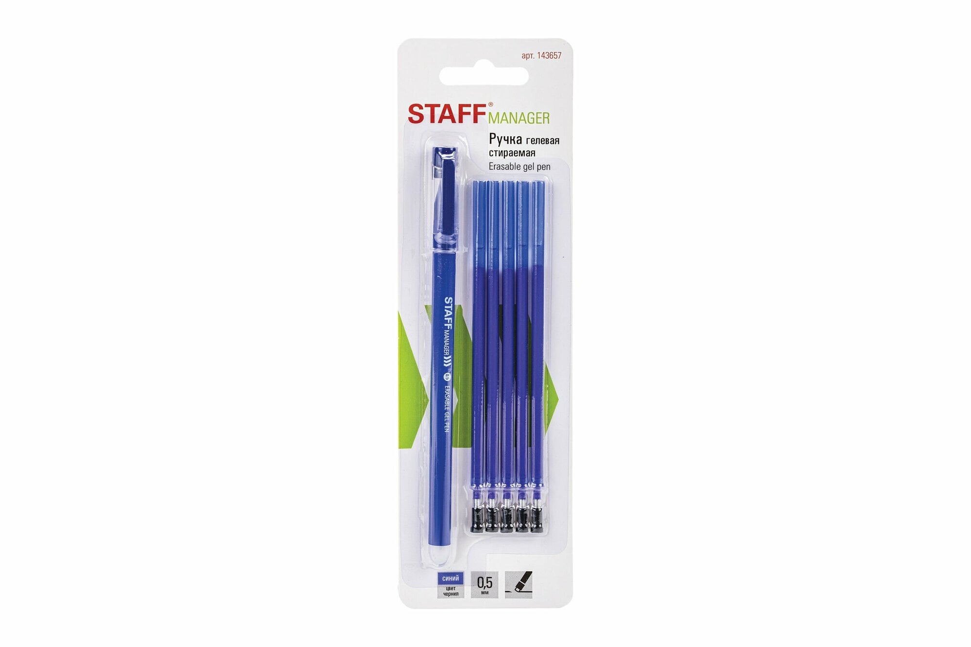 Ручка стираемая гелевая STAFF "Manager" EGP-656, синяя, + 5 сменных стержней, линия письма 0,35 мм, 143657 (арт. 143657) интересное: