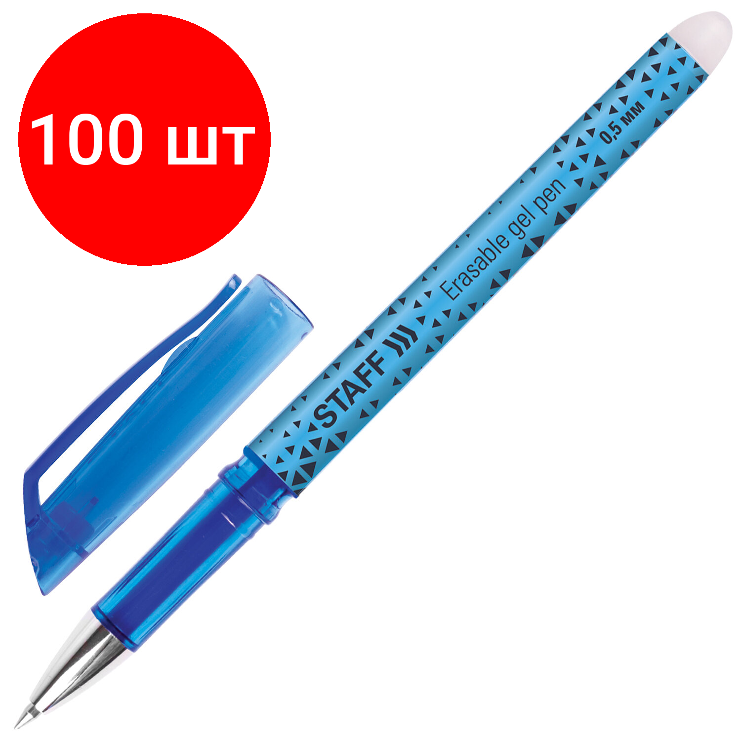 Купить Комплект 100 шт, Ручка стираемая гелевая STAFF "College EGP-101", синяя, хромированные детали, узел 0.5 мм, линия письма 0.35 мм, 142494