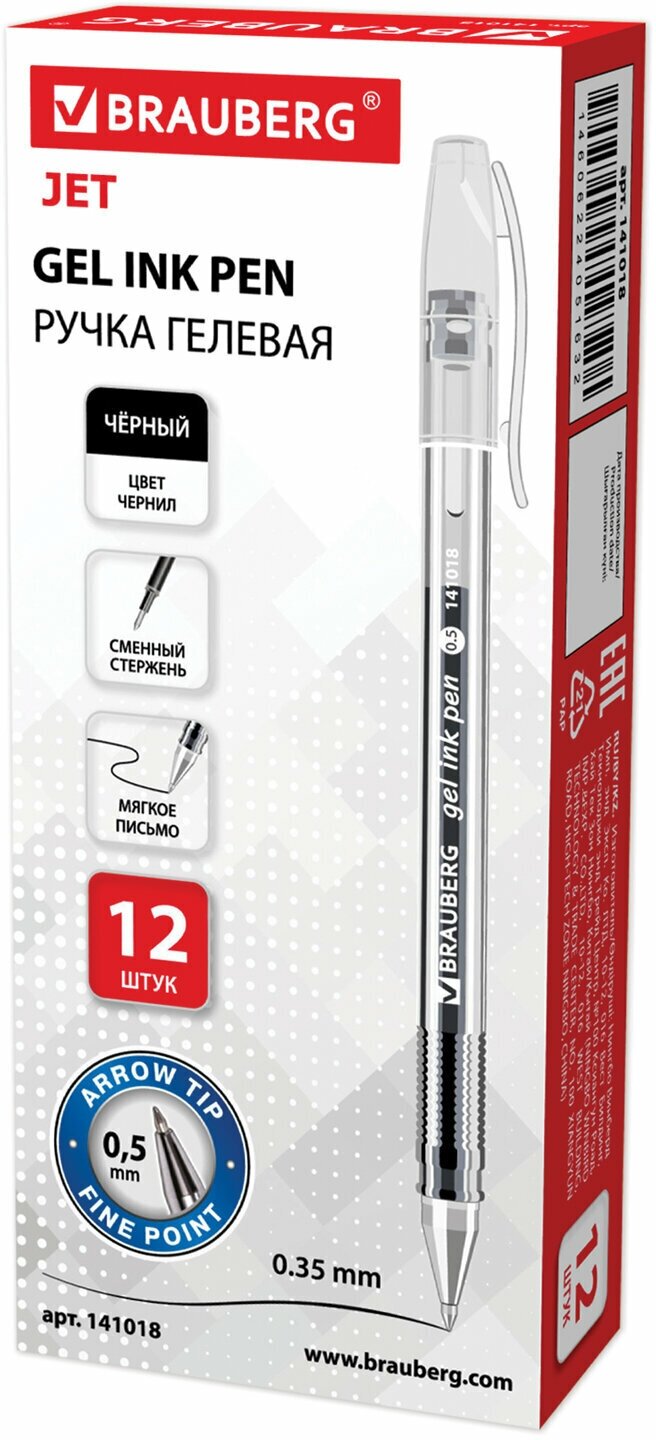 Ручка гелевая BRAUBERG Jet, КОМПЛЕКТ 12 штук, ЧЕРНАЯ, узел 0,5 мм, линия письма 0,35 мм, 880208 интересное: