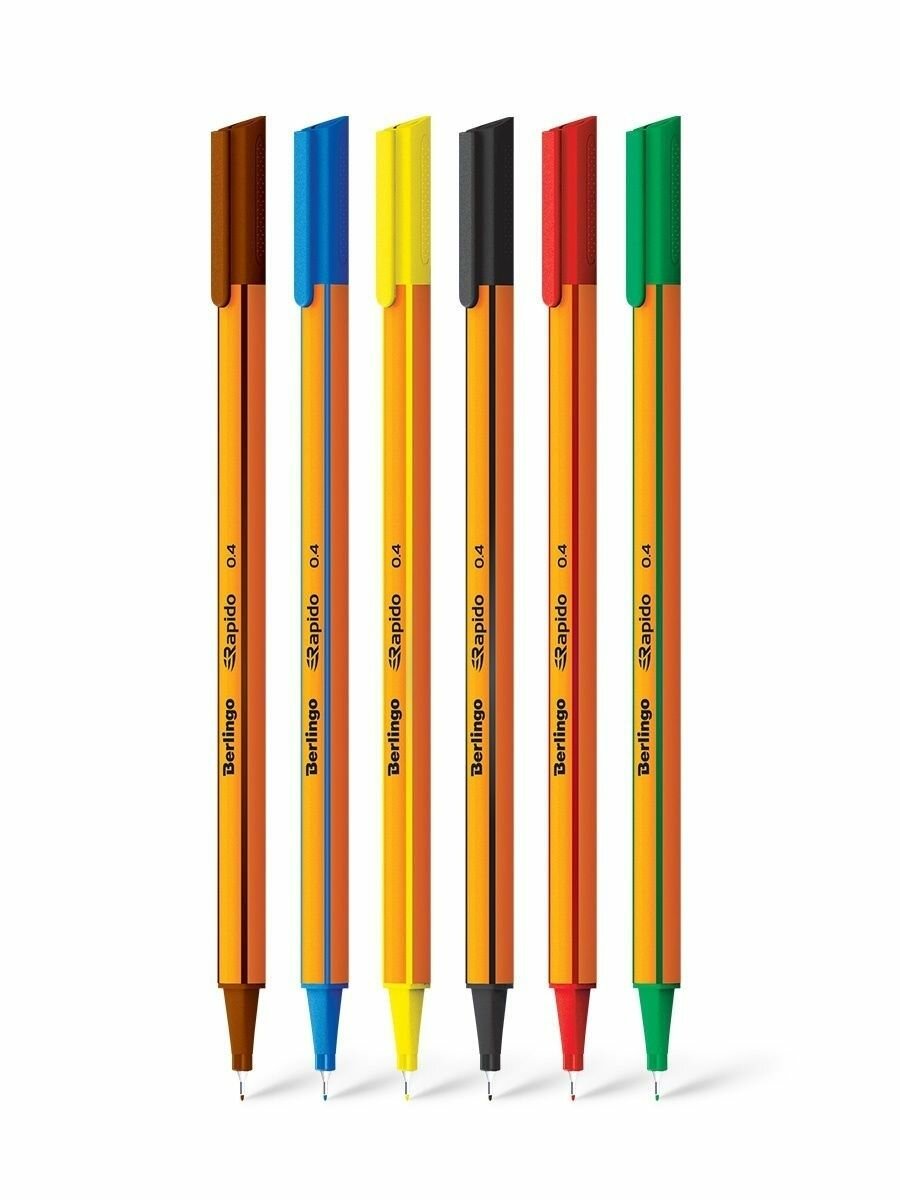 Набор капиллярных ручек Berlingo Rapido (0.4мм, трехгранные, 6 цветов) 6шт., 24 уп. (CK_40006)