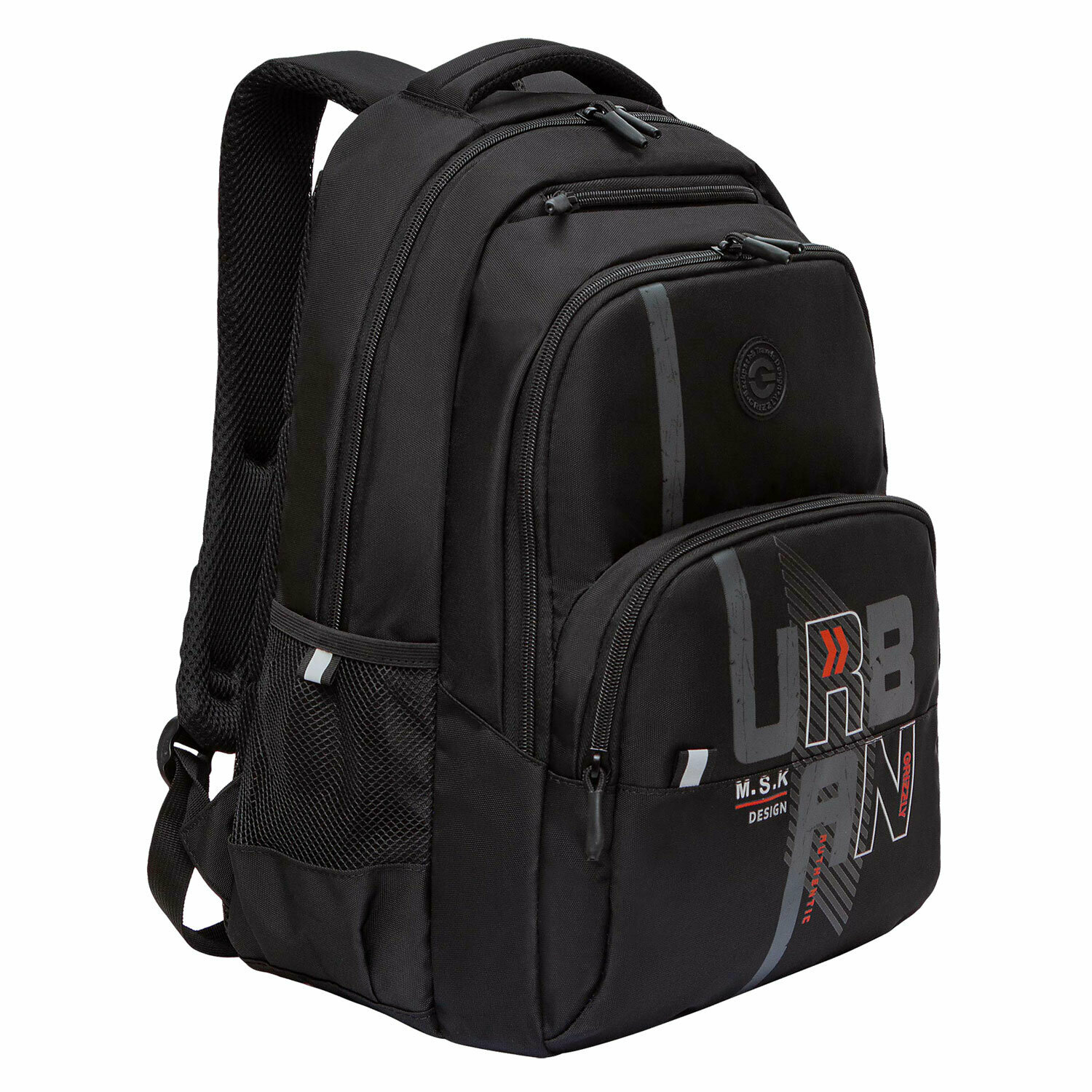 Рюкзак молодёжный 45 х 32 х 23 см, Grizzly "Спорт", эргономичная спинка, отделение для ноутбука, чёрный