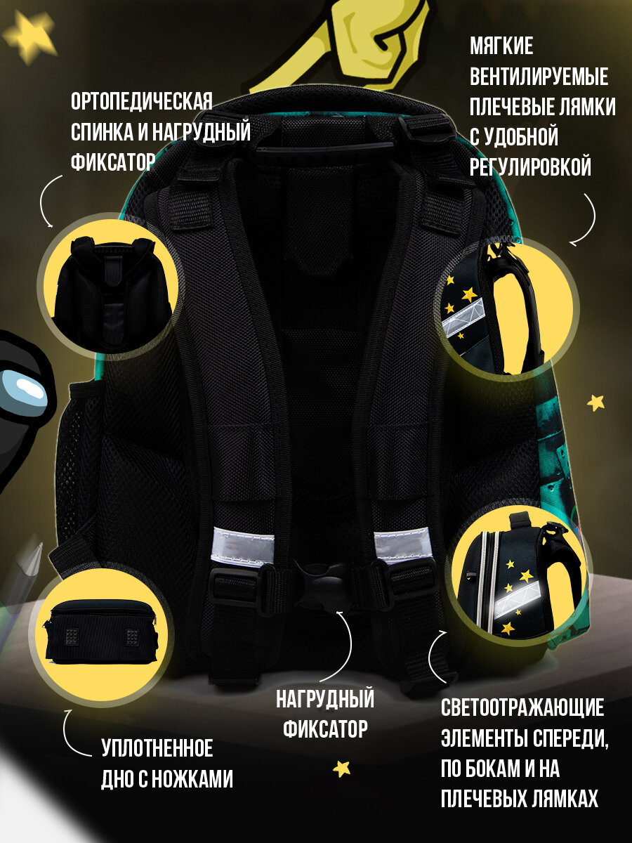 Купить Рюкзак школьный детский Among Us, ранец с ортопедической спинкой девочке, мальчику, первокласснику, подростку 4031DU