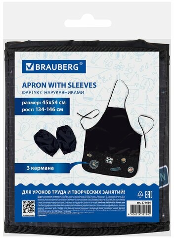 Накидка фартук с нарукавниками для труда BRAUBERG, 3 кармана, 46x54 см, "Space Mission", 271636 интересное: