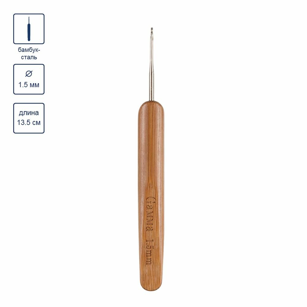 Купить Крючки для вязания "Gamma" RHB крючок с бамбуковой ручкой сталь бамбук d 1.5 мм 13.5 см в блистере .