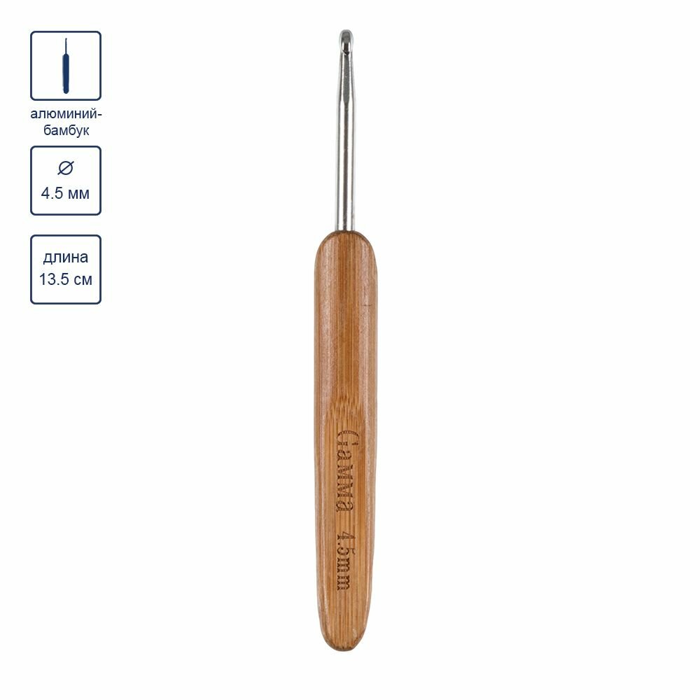 Купить Крючки для вязания "Gamma" RHB крючок с бамбуковой ручкой бамбук алюминий d 4.5 мм 13.5 см в блистере .