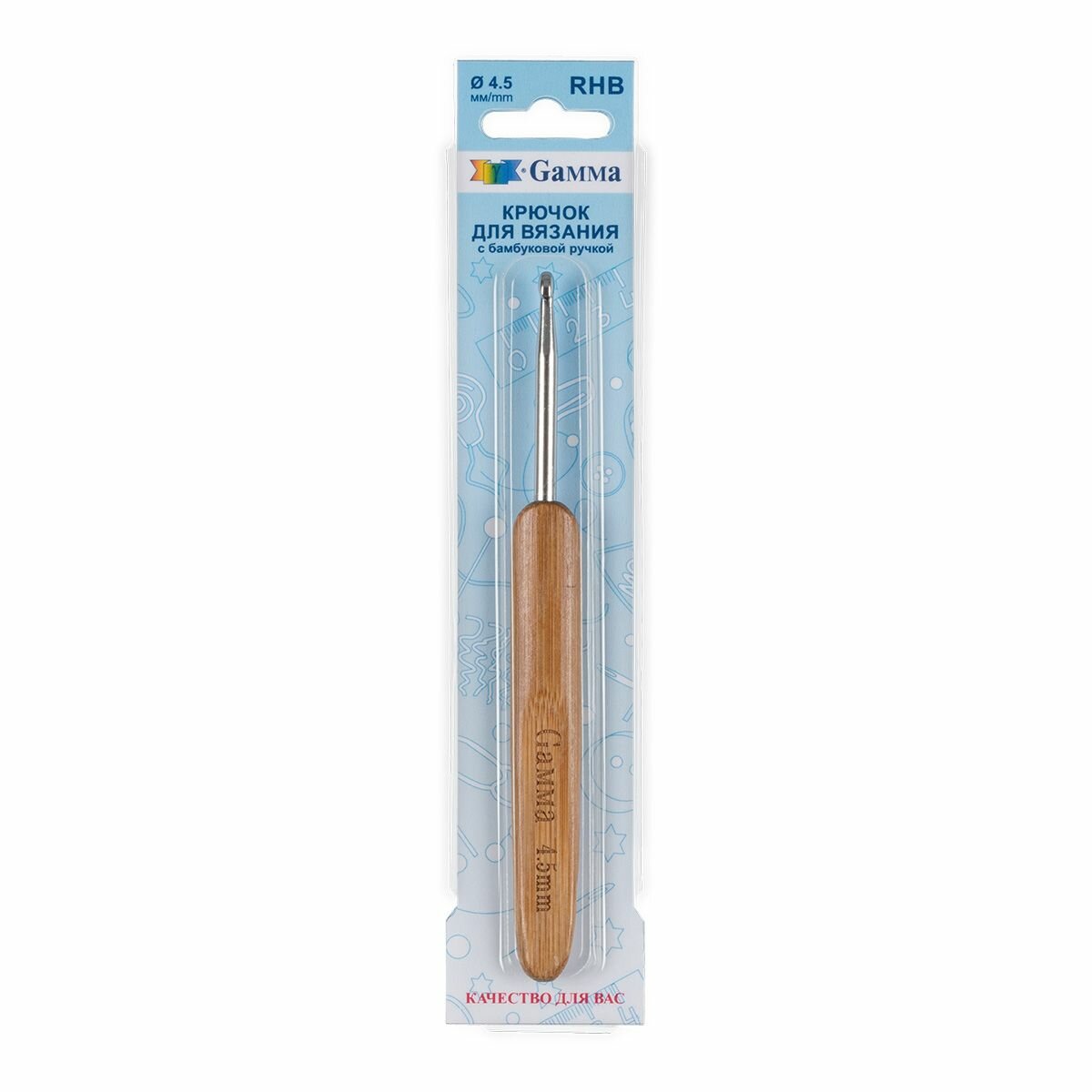 Крючки для вязания "Gamma" RHB крючок с бамбуковой ручкой сталь бамбук d 0.5 мм 13.5 см в блистере .