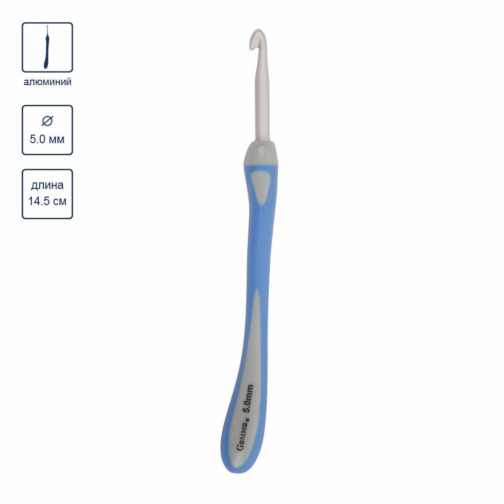 Купить Крючки для вязания "Gamma" RHT крючок с прорезин. ручкой алюминий d 5.0 мм 14.5 см в блистере c покрытием