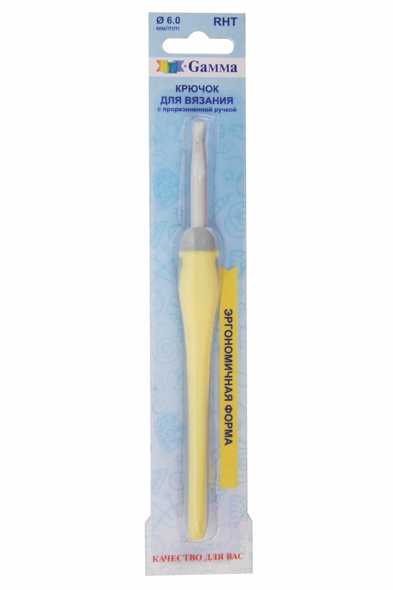 Купить Крючки для вязания "Gamma" RHT крючок с прорезин. ручкой алюминий d 6.0 мм 14.5 см в блистере c покрытием