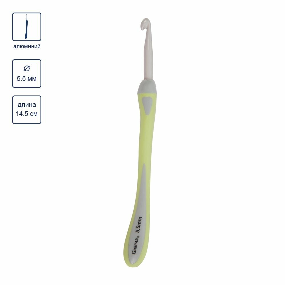 Крючок для вязания "Gamma" RHT с прорезин. ручкой алюминий d 5.5 мм 14.5 см c покрытием