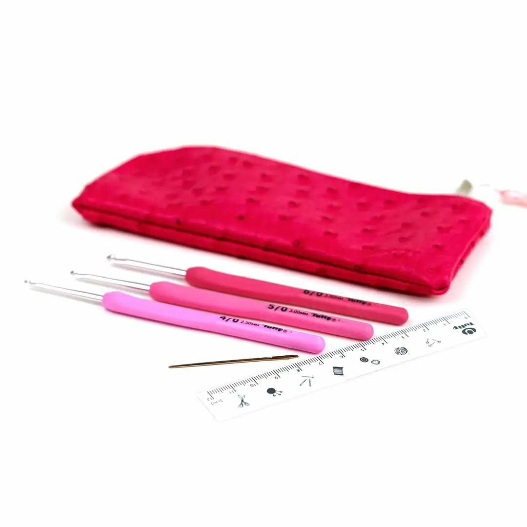 | Дополнительная информация | Tulip - это марка, которая заботится о своих покупателях и старается сделать вязание наиболее комфортным. Крючки являются визитной карточкой этой японской фабрики. Это изделия гарантированно высокого качества. Форма ручки является наиболее удобной для комфортной работы, подходит для любого захвата. Специально обработанный наконечник крючка, позволяет скользить нити легко и свободно. Крючки выполнены в розовом цвете. Оттенок ручек разный в зависимости от размера. Очень милые и яркие! Все инструменты хранятся в розовом футляре из кожи страуса (имитация). Футляр закрывается на молнию, которую украшает шелковая кисть с большой хрустальной бусиной. |