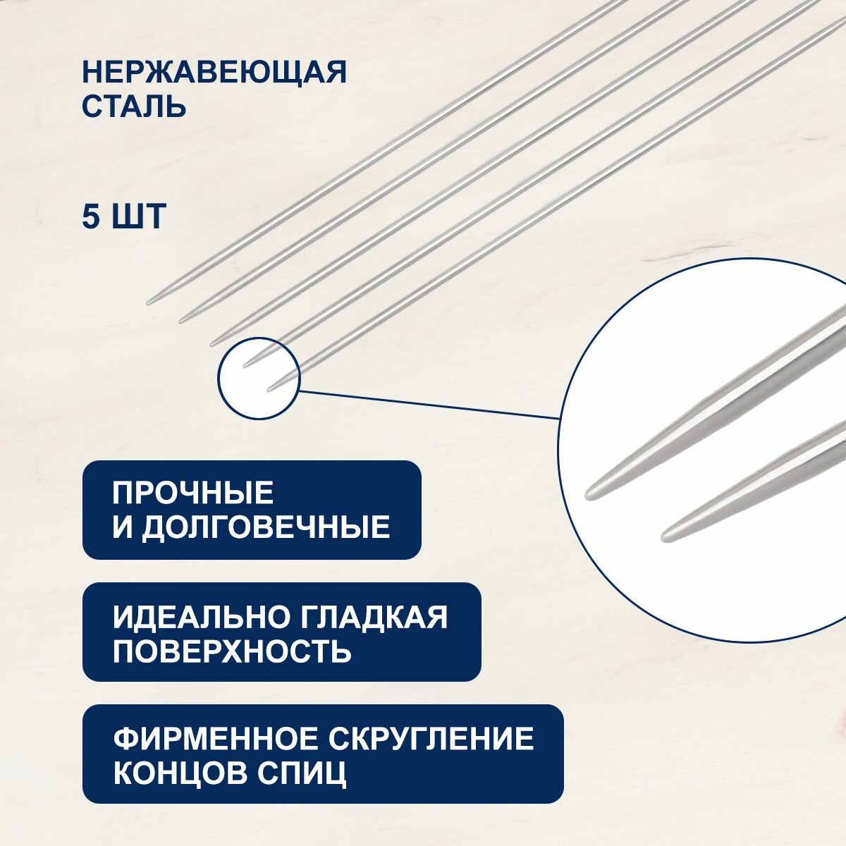 Спицы для вязания носочные Hobby&Pro, 20см*5мм, металлические, 5 шт