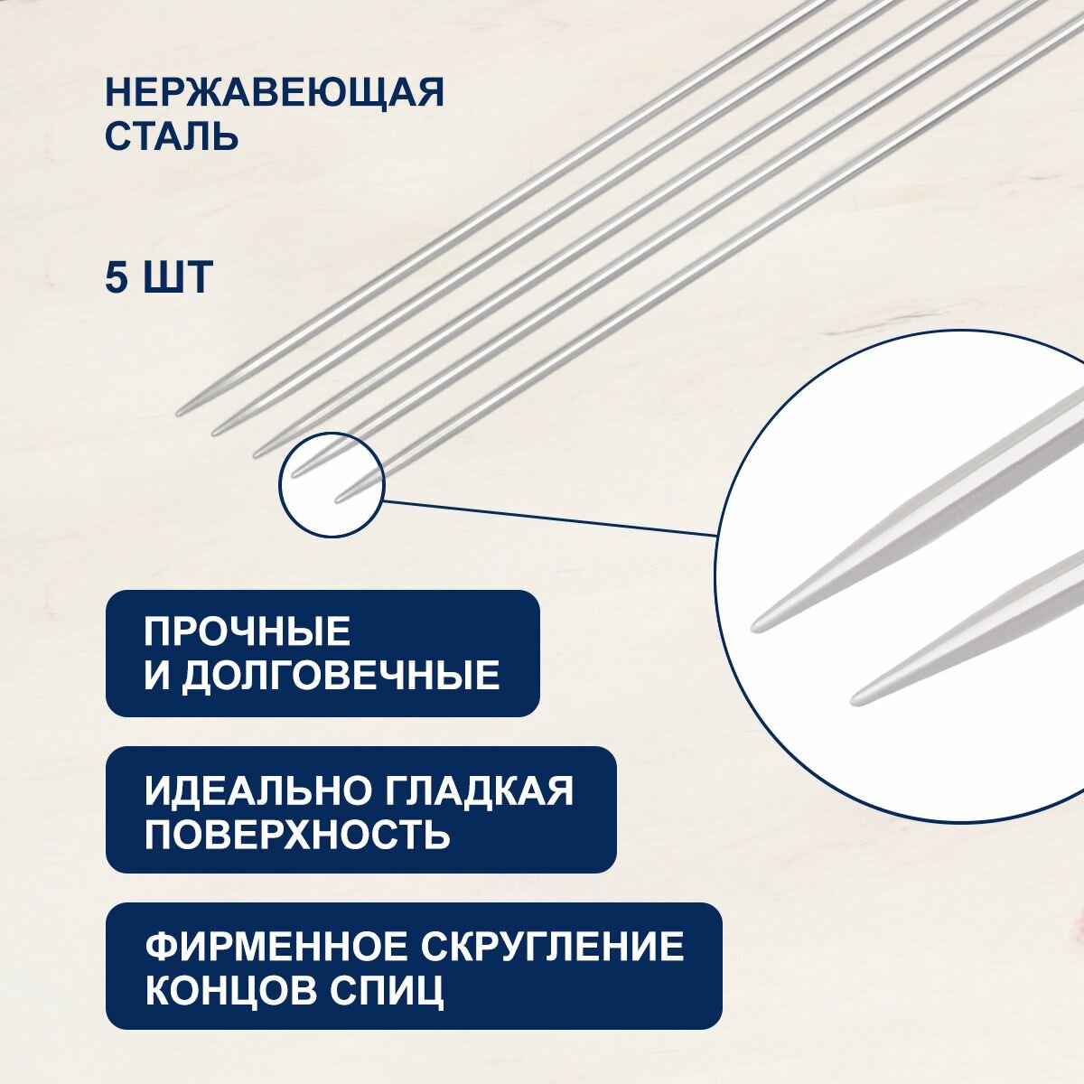 Спицы для вязания носочные Hobby&Pro, 20см*5мм, металлические, 5 шт