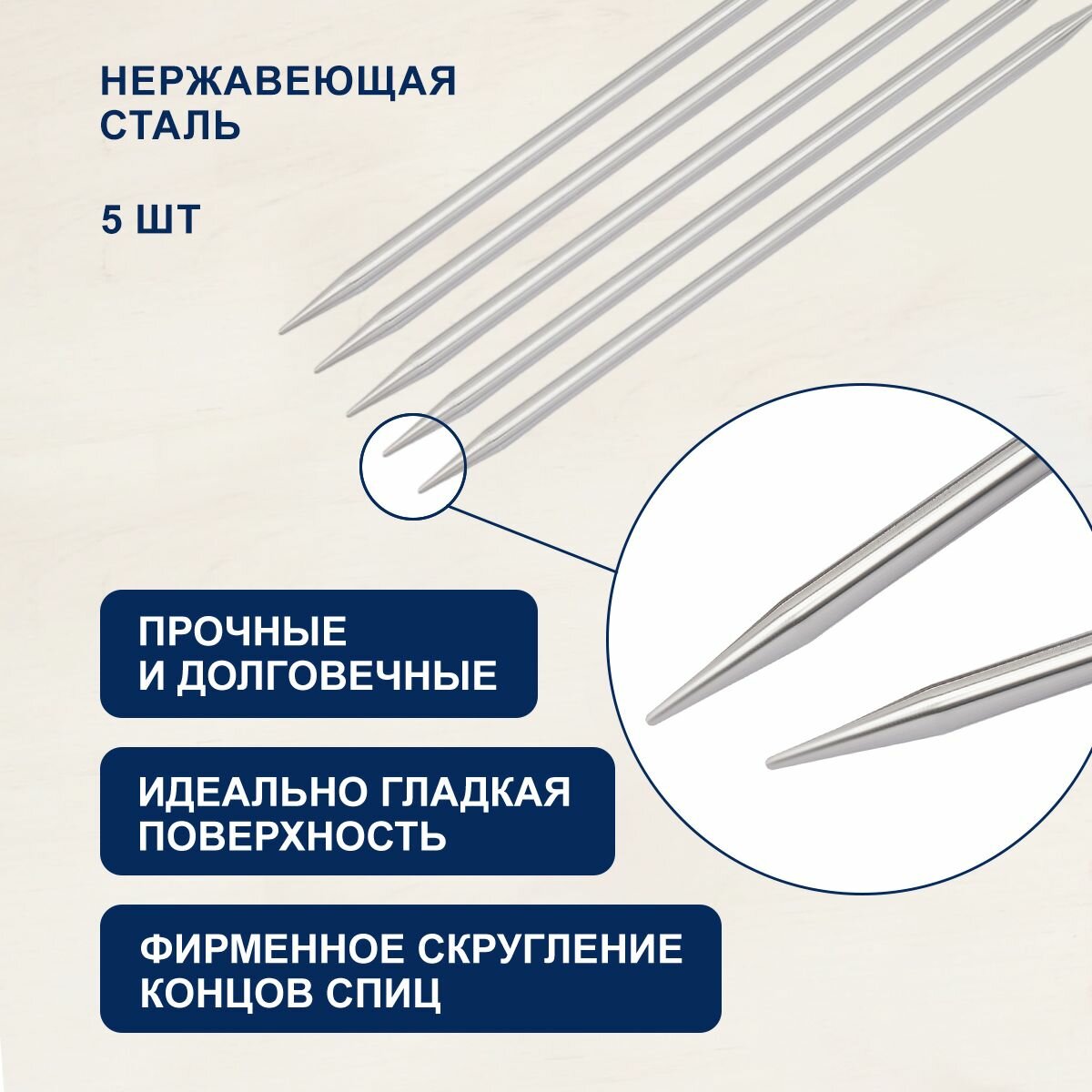 Спицы для вязания носочные Hobby&Pro, 20см*5мм, металлические, 5 шт