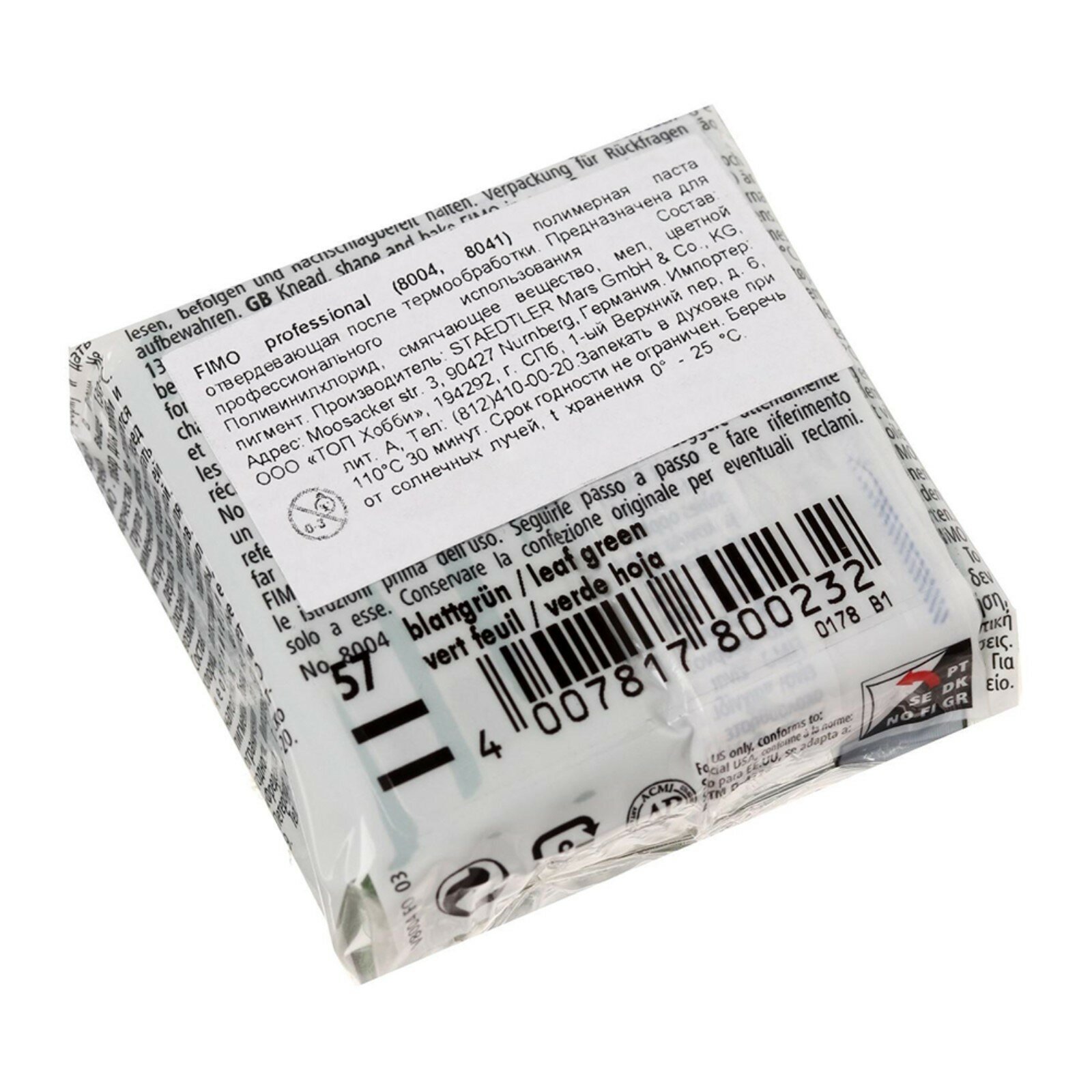Полимерная глина FIMO Professional зеленый лист (57), 85г, 1шт