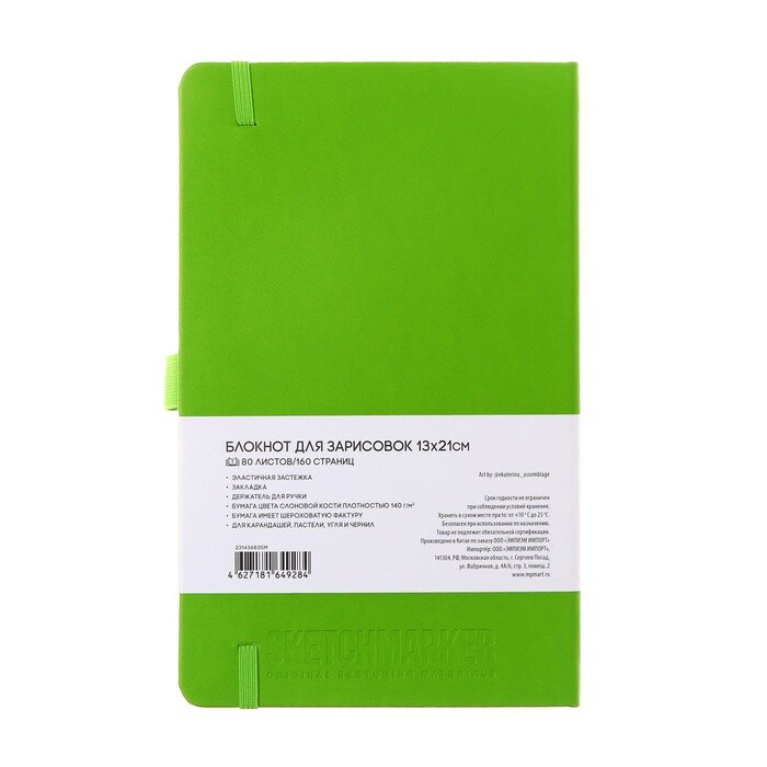СохранитьСкетчбук для рисования, блокнот для скетчинга SKETCHMARKER Sketchmarker 140г/кв. м 13*21см 80л твердая обложка, цвет Зеленый луг интересное: