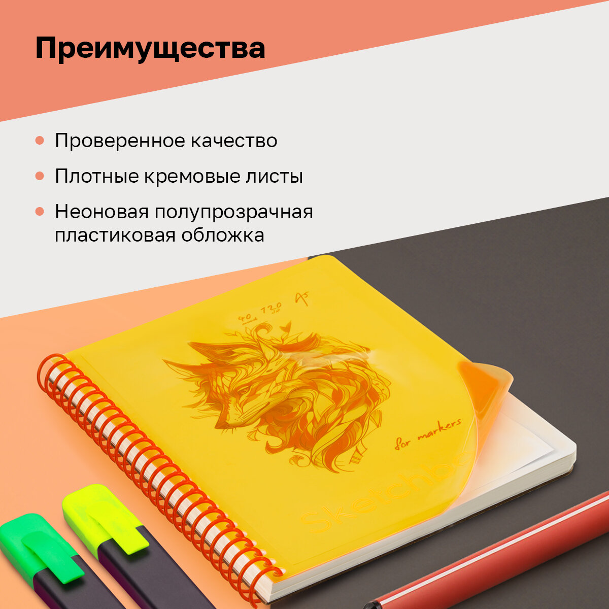 Скетчбук 40л, А5 на гребне BG "Neon. Orange", маркерная бумага 120г/м2 интересное: