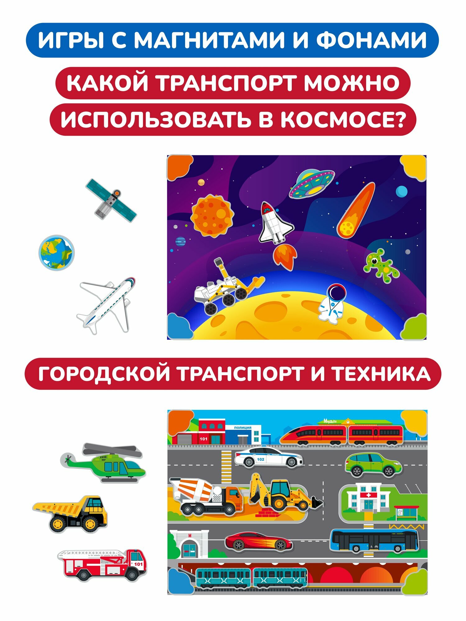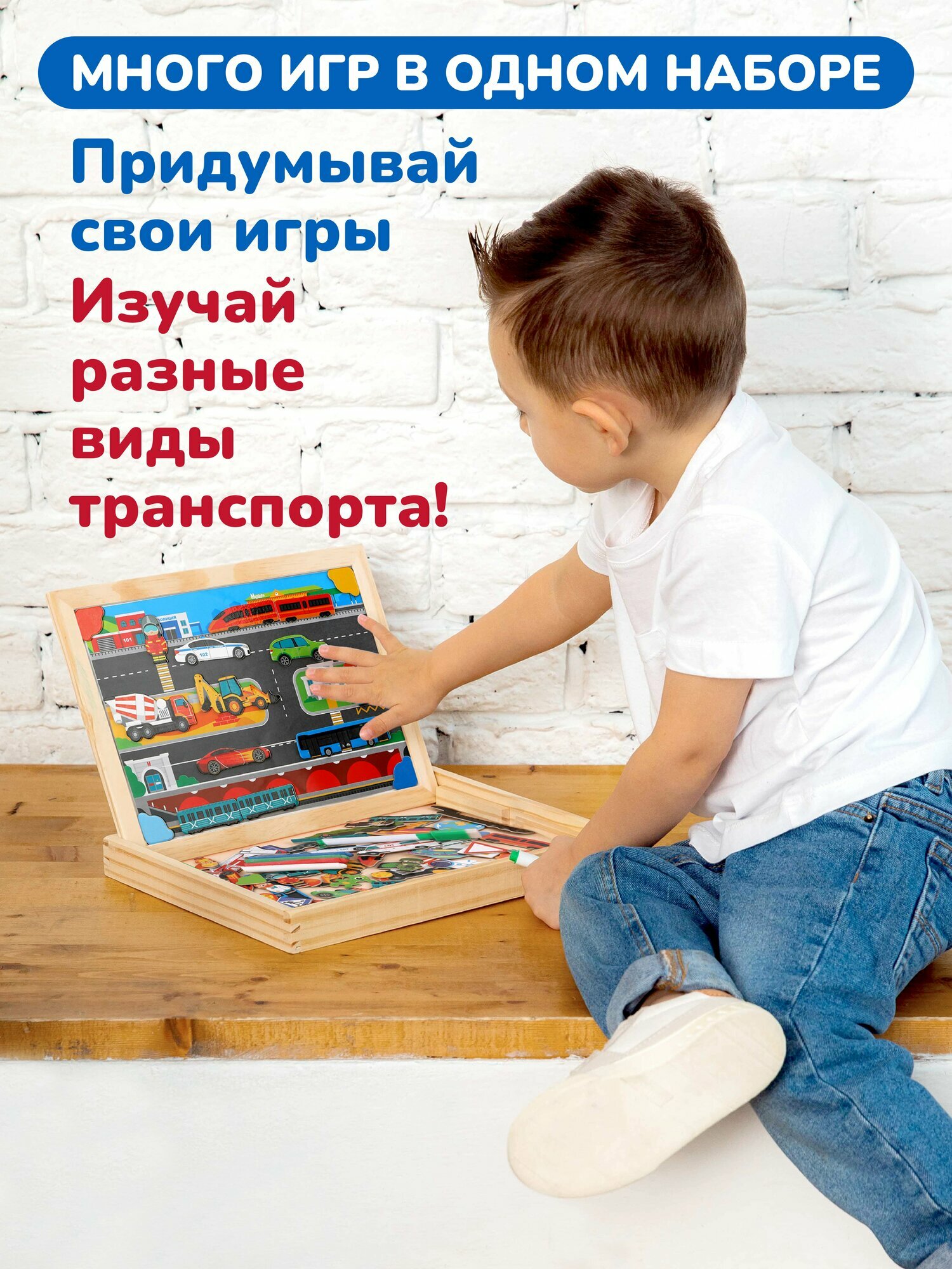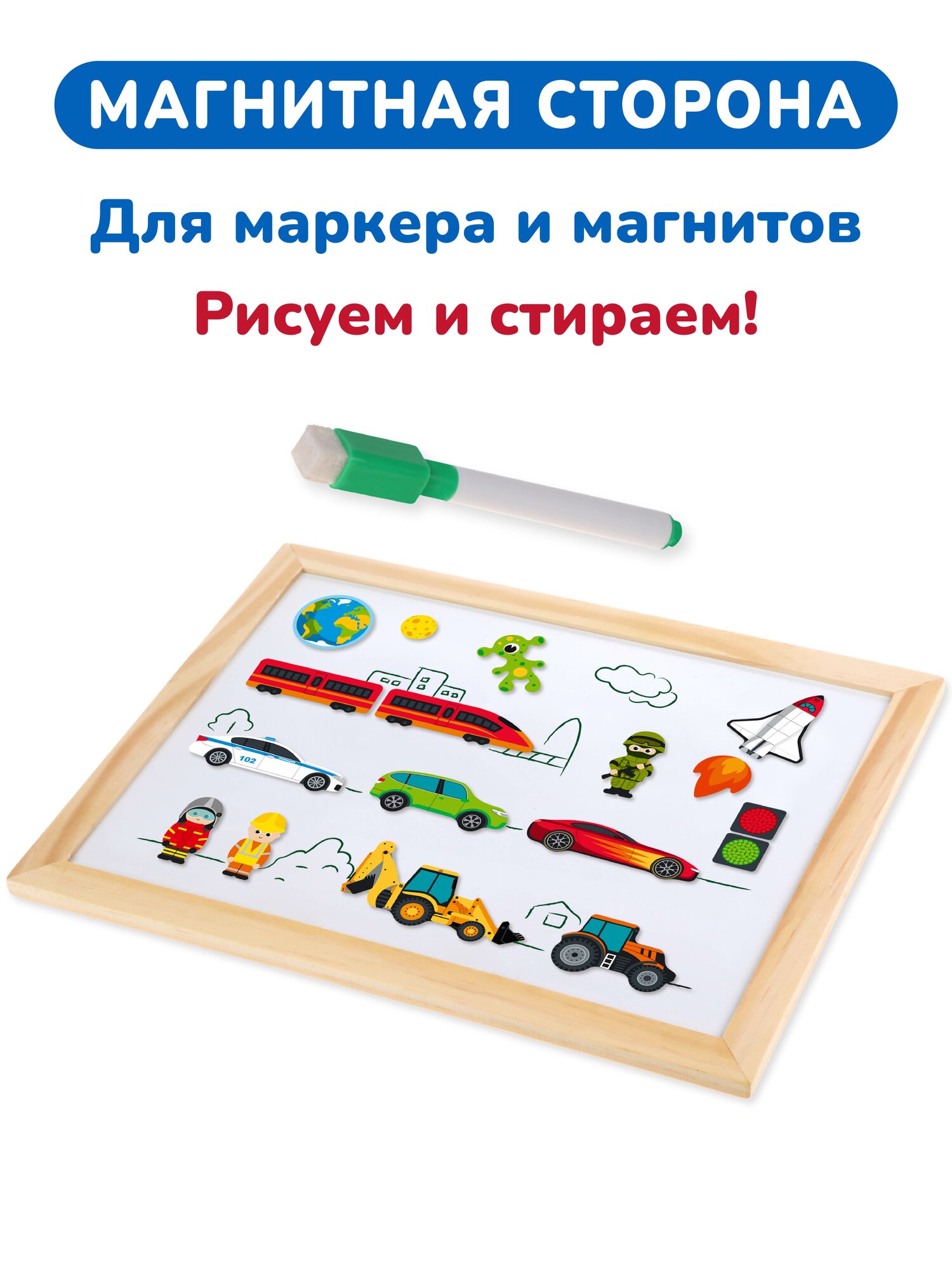 Магнитная двухсторонняя доска для рисования Mapacha "Транспорт", бизи-чемоданчик, 12 игр, мелки и маркер в комплекте интересное: