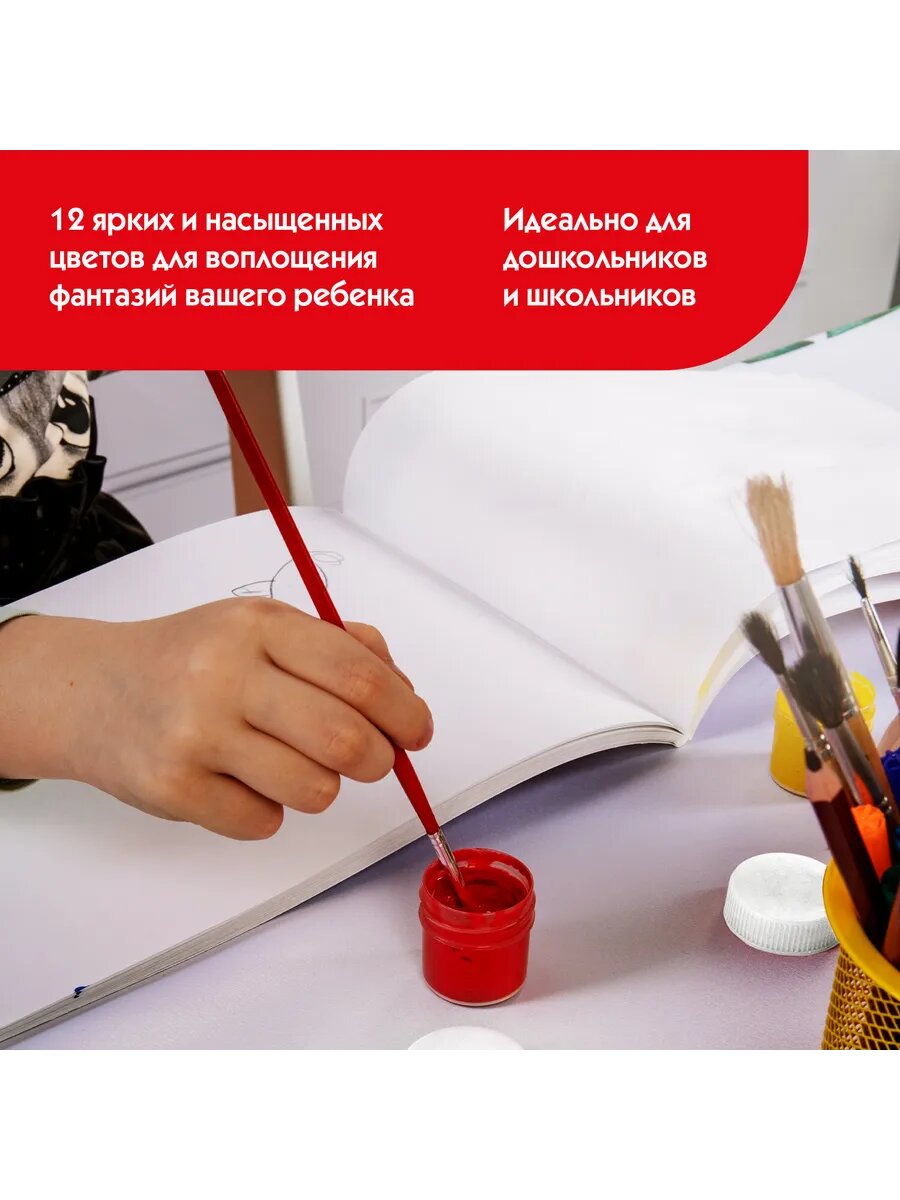 Гуашь (краска) для рисования школьная Пифагор Эники-беники, 12 цветов по 10 мл, без кисти, картонная упаковка, 191330