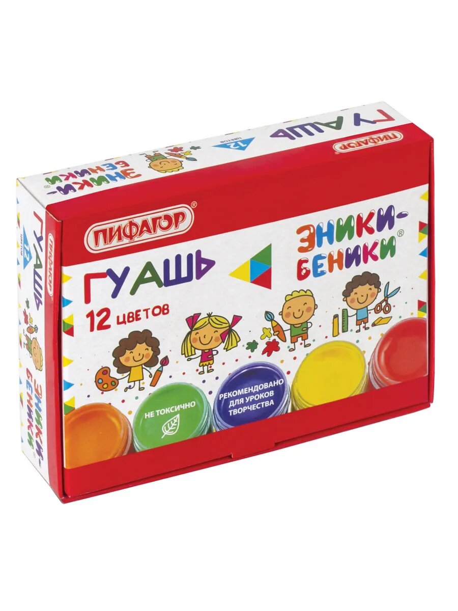 Гуашь пифагор Эники-Беники 191330, 12 цв, баночка, 10мл, без кисти, картонная коробка