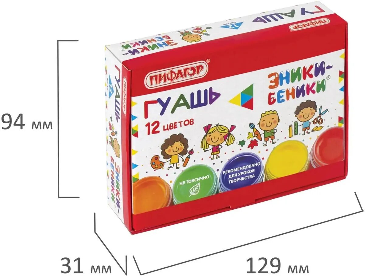 Купить Гуашь пифагор Эники-Беники 191330, 12 цв, баночка, 10мл, без кисти, картонная коробка