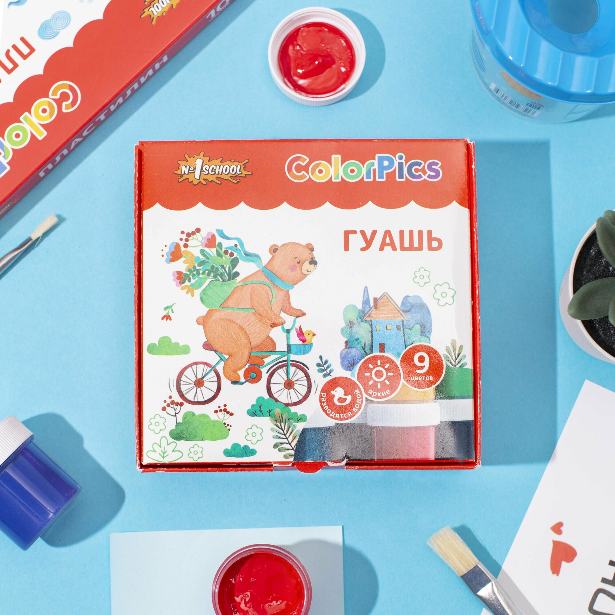 Гуашь №1 School "ColorPics", 6 цветов, 20 мл
