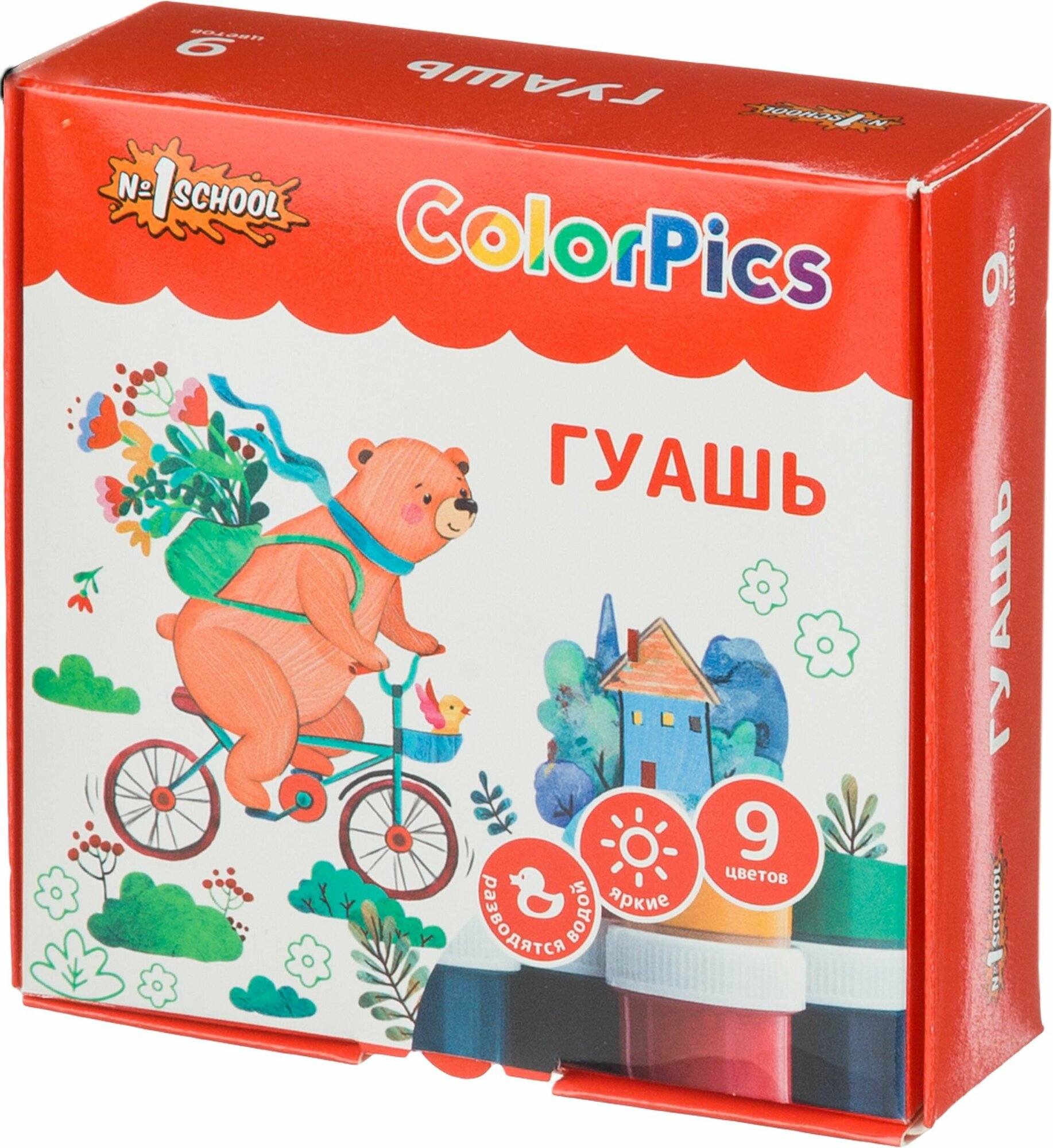 Комплект 10 наб, Гуашь №1 School ColorPics набор 9 цв, 20 мл