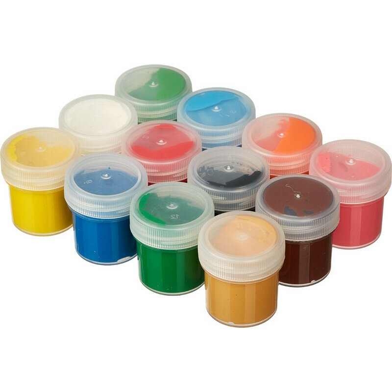 Купить Гуашь для рисования Комус Класс, набор 12 цветов, 20 мл баночка