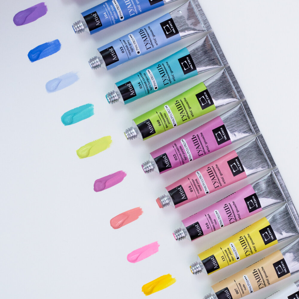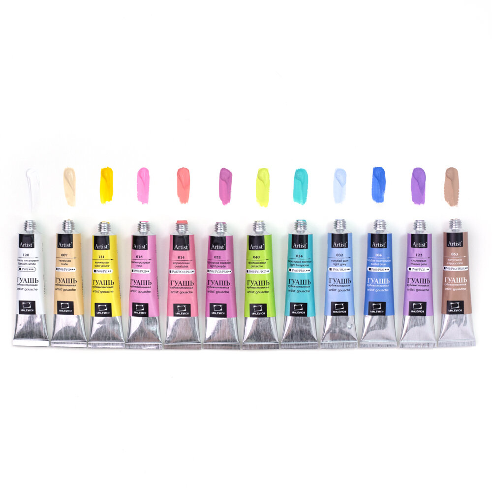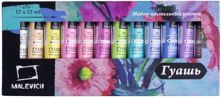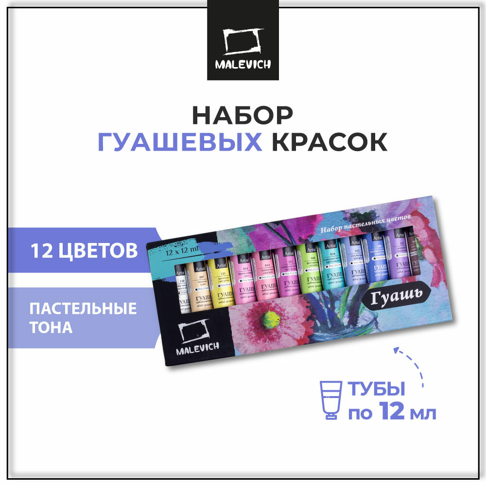 Набор гуаши Малевичъ пастельных цветов, гуашь в тубах 12 цветов по 12мл интересное: