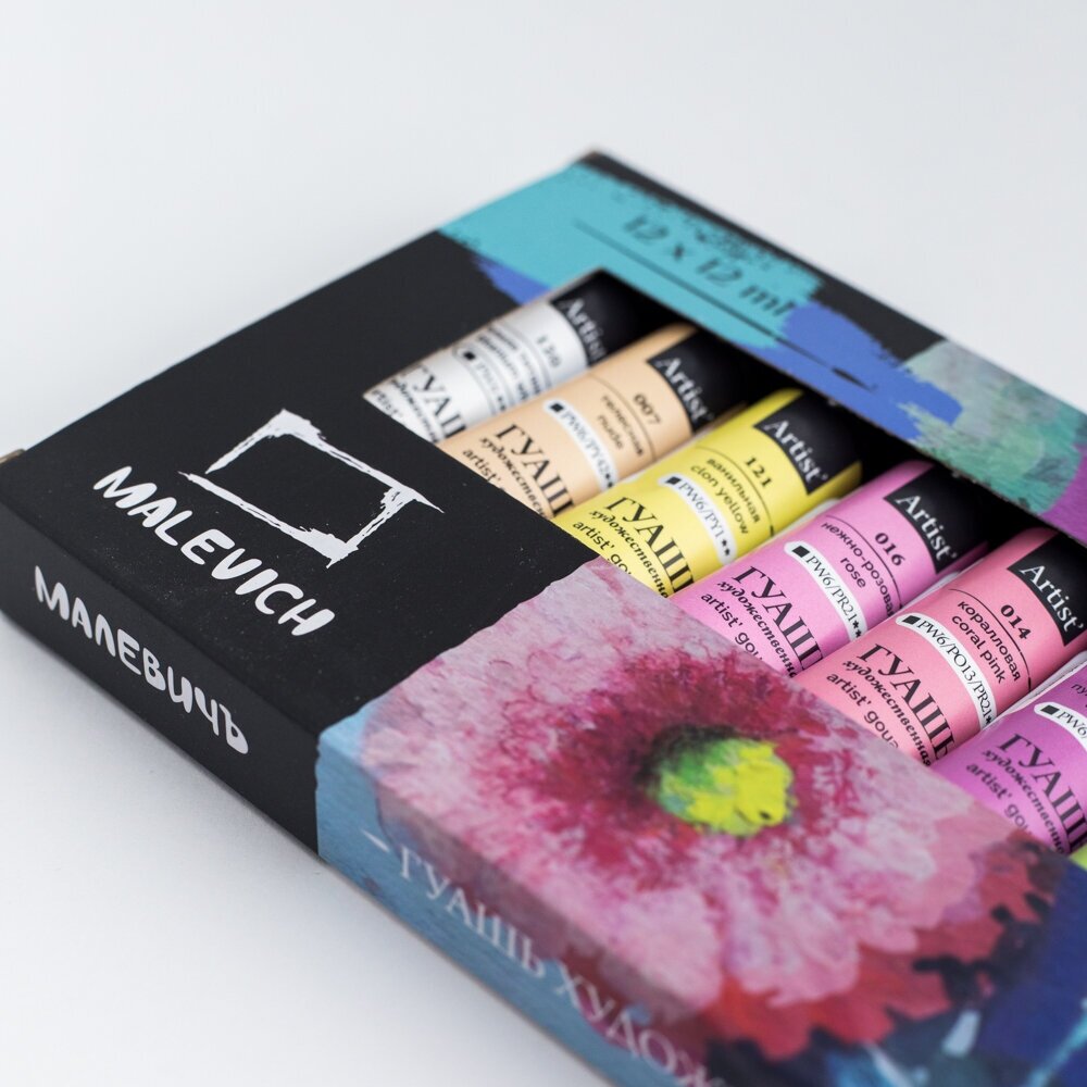 Набор гуаши Малевичъ пастельных цветов, 12 цветов по 12мл