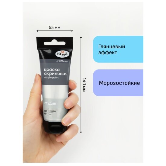 Купить Краска акриловая Гамма художественная "Студия", 75мл, пластиковая туба, серебро