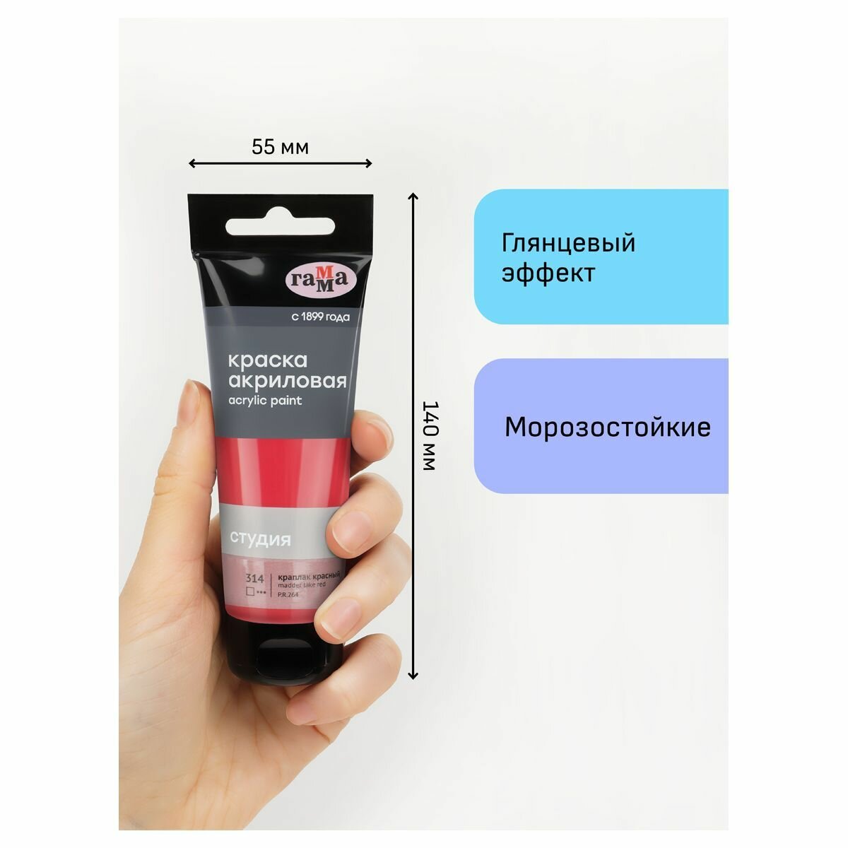 Краска акриловая художественная Гамма "Студия", пластиковая туба, 110мл, красная светлая (2802110222)