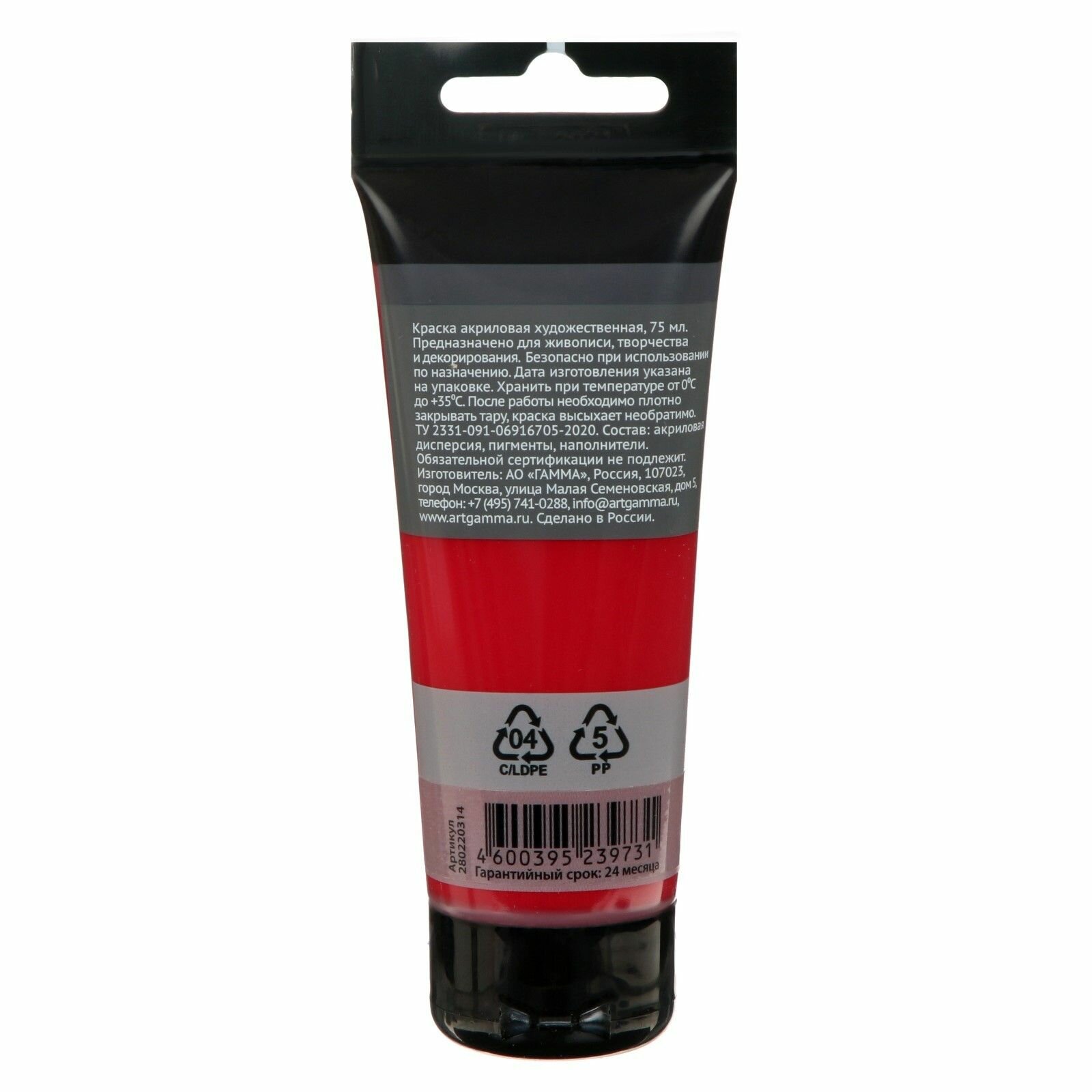 Купить Гамма Акриловая краска Студия, пластиковая туба (280220), 75 мл, краплак красный