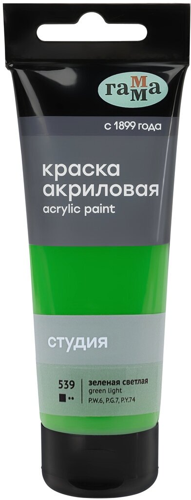 Краска акриловая художественная Гамма "Студия", 75мл, зеленая светлая