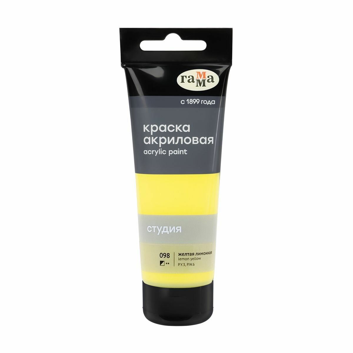 Краска акриловая Гамма художественная "Студия", 75мл, пластиковая туба, желтая лимонная