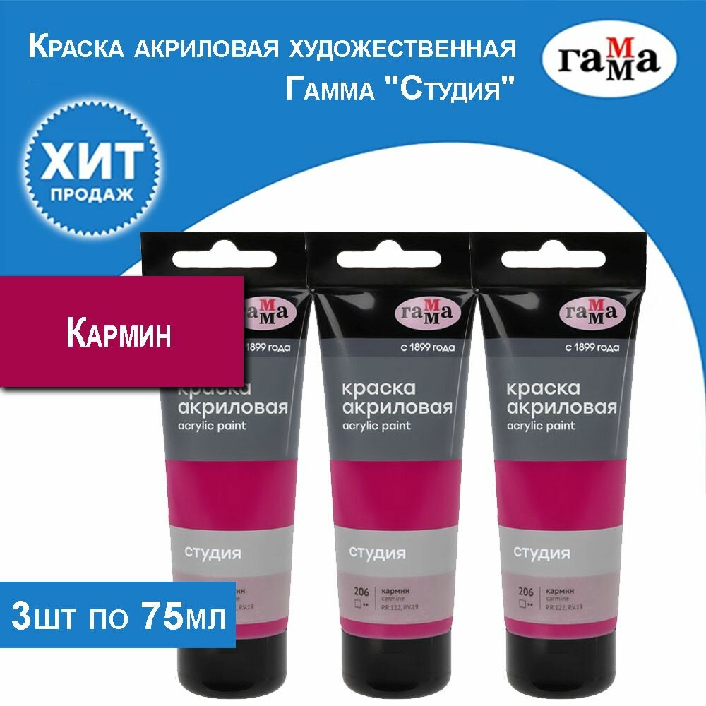 Купить Краска акриловая художественная Гамма "Студия", кармин 3 тубы по 75 мл