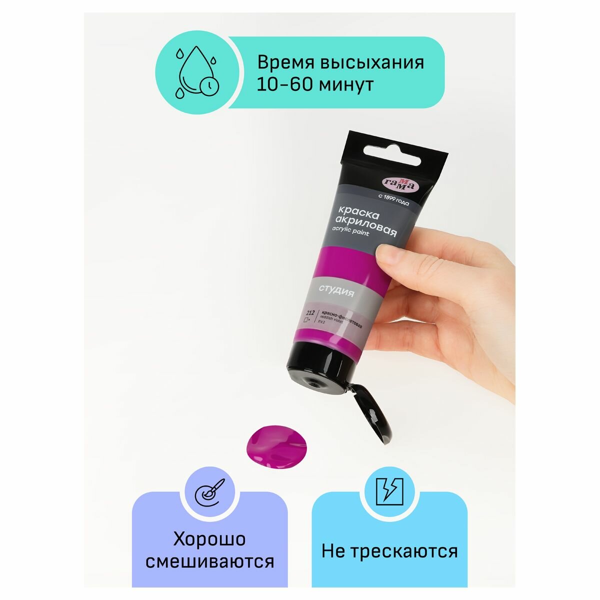Краска акриловая художественная Гамма "Студия", 75 мл, красно-фиолетовая