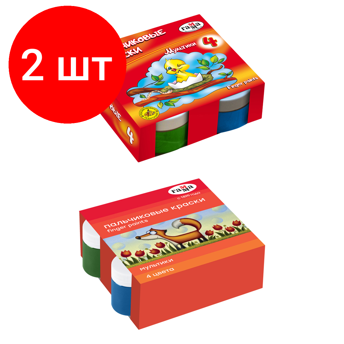Купить Комплект 2 шт, Краски пальчиковые Гамма "Мультики", классические, 04 цвета, 50мл, картон. упак