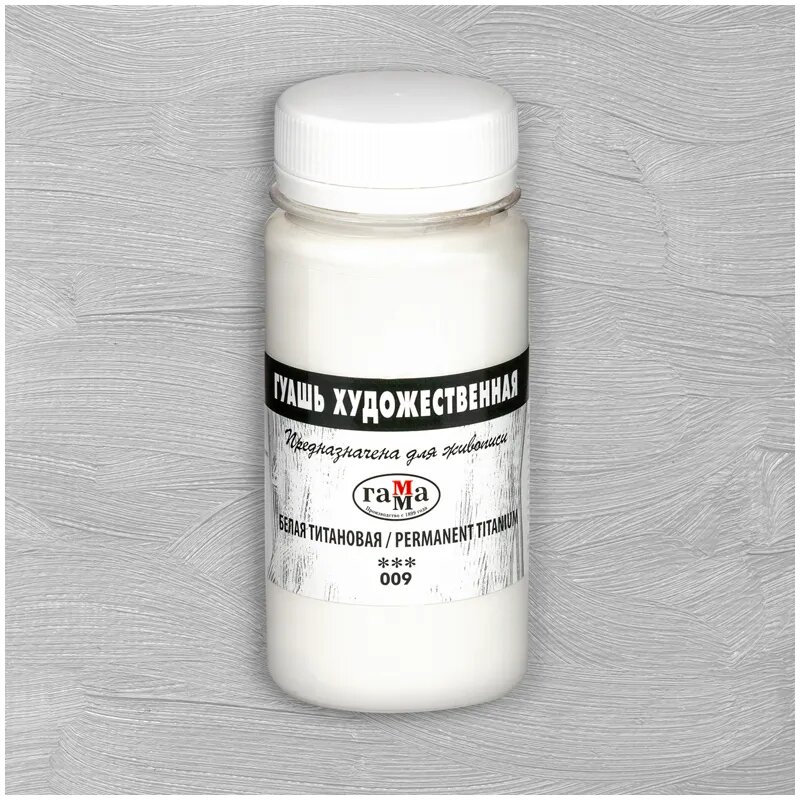 Гуашь художественная Гамма, белая титановая, 110 мл., цвет 009
