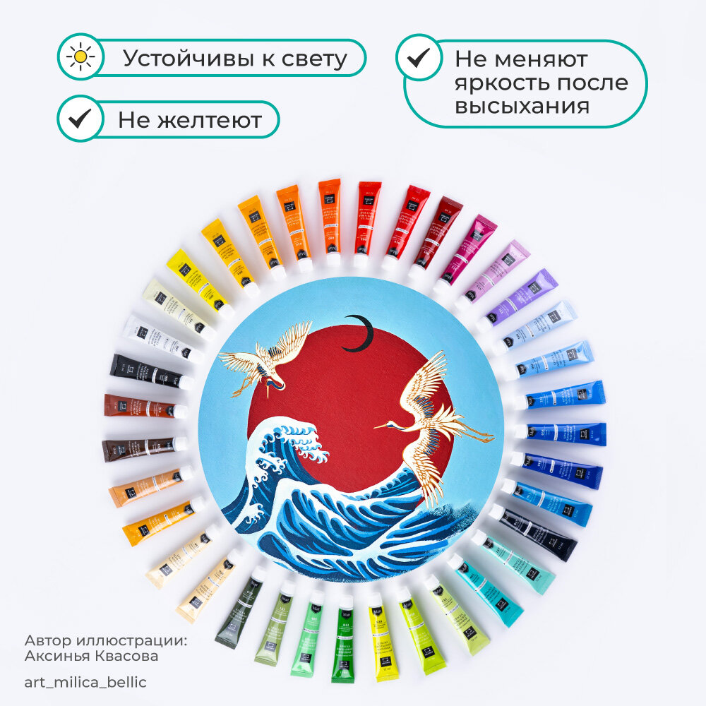Набор Матовых Акриловых Красок Малевичъ, акрил в тубах, 36 Цветов