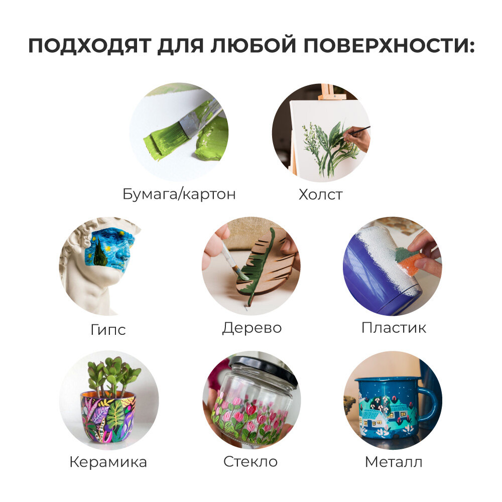 Матовые акриловые краски Малевичъ, набор 12 цветов