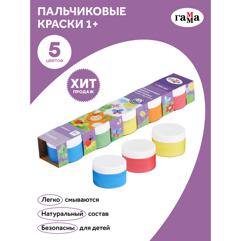 Купить Краски пальчиковые Гамма "Малыш", сенсорные, 1+, 05цв, 50мл. упак.