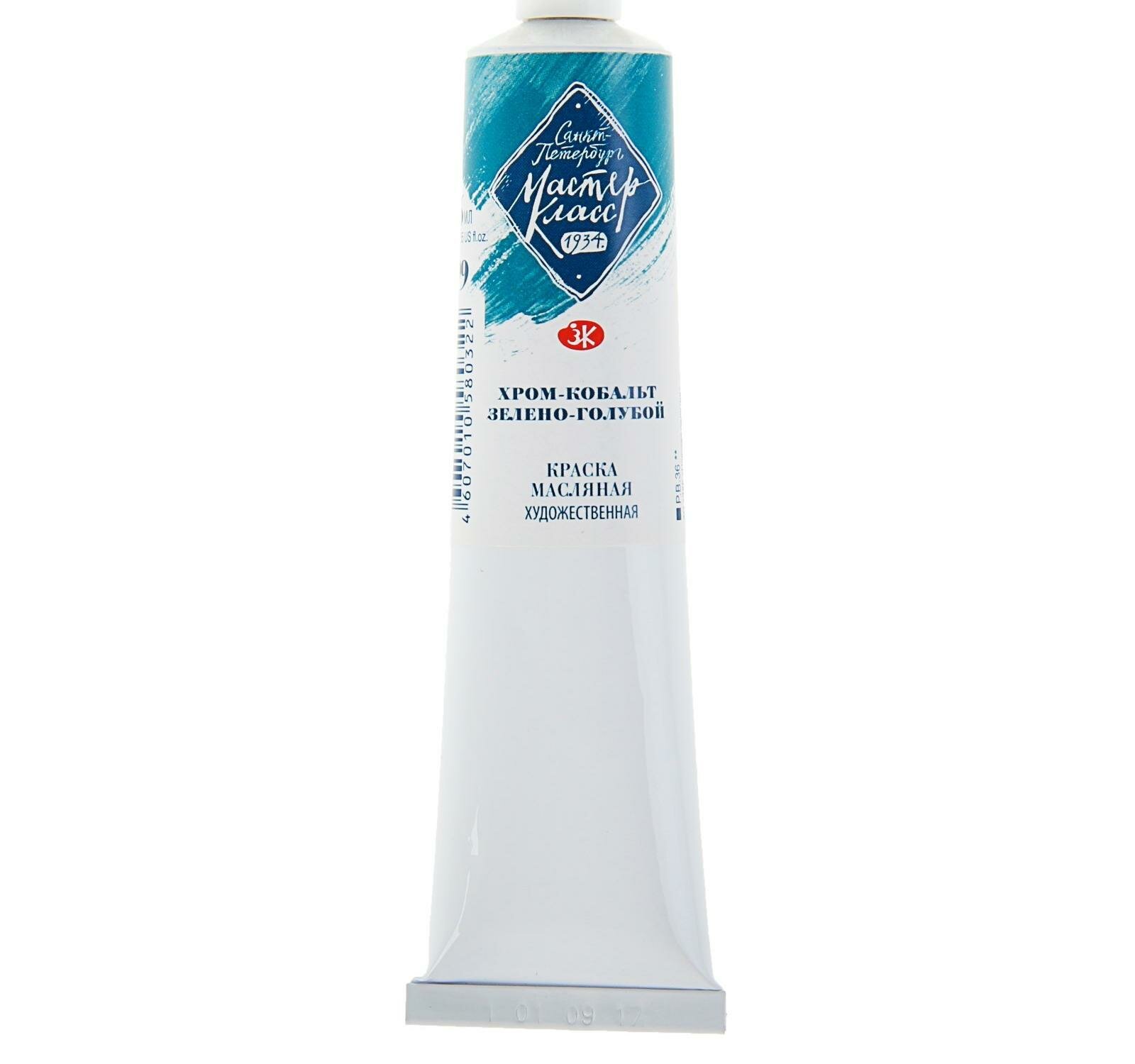 Краска масляная 46мл, Хром-кобальт зелено-голубой Мастер-класс Невская палитра 1104304