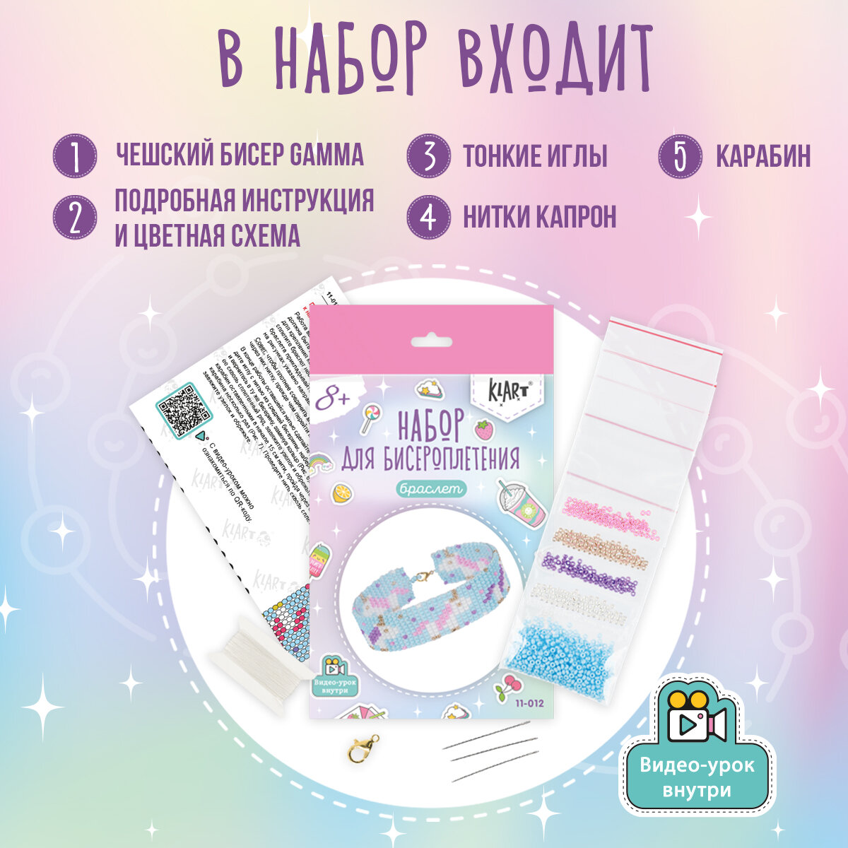 | Комплектация | чешский бисер Gamma, капроновая нить, бисерные иглы, замочек-карабин, подробная инструкция с цветными иллюстрациями |