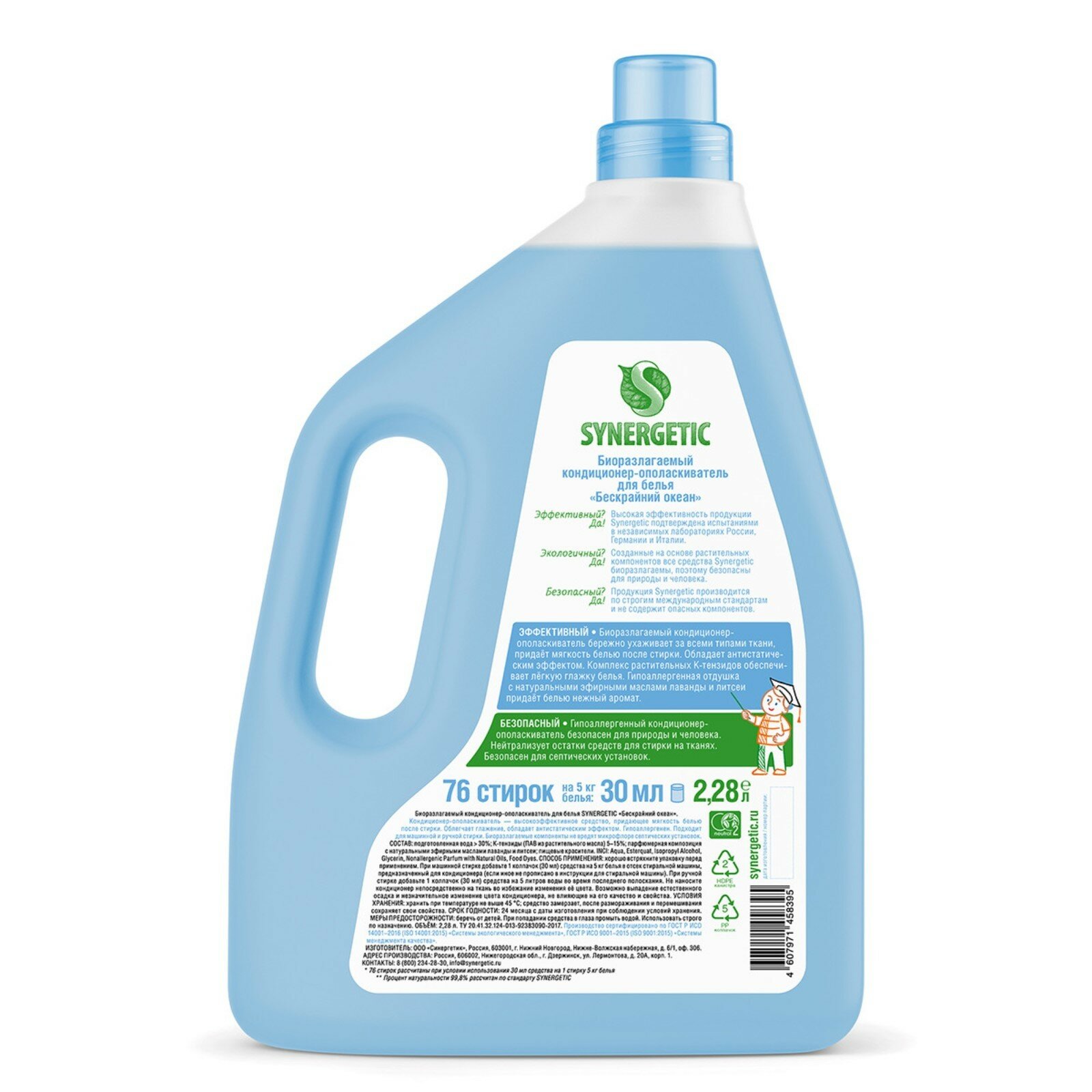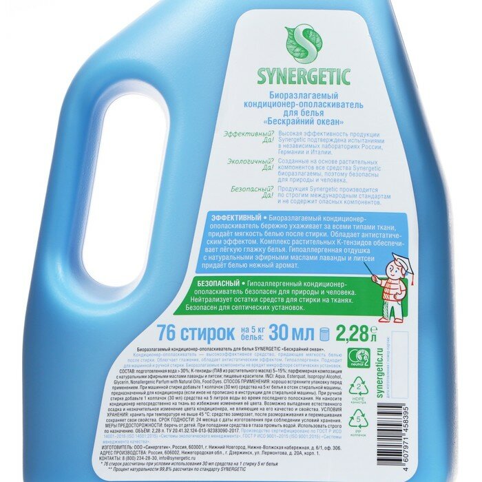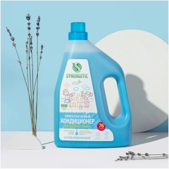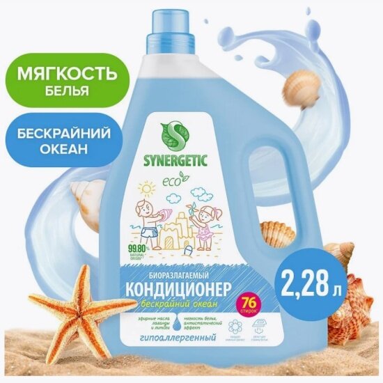 Кондиционер-ополаскиватель для белья Synergetic Бескрайний океан, биоразлагаемый, 2.28 л интересное: