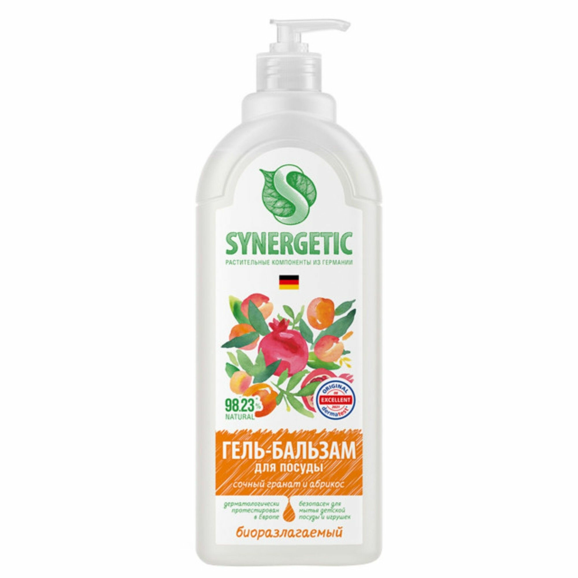 Гель-бальзам для мытья посуды Synergetic Сочный Гранат и Абрикос, гипоаллергенный, 500 мл
