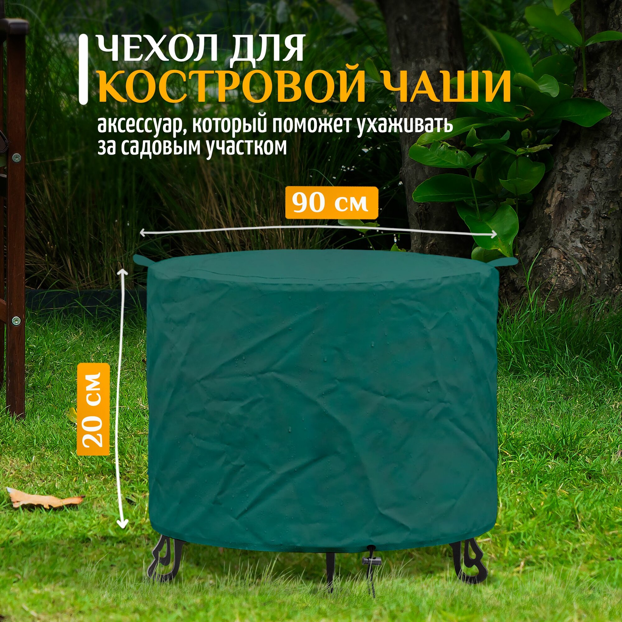 Чехол для костровой чаши Fler 90х20 см, зеленый, дождевой, защитный и водонепроницаемый тент на костровую чашу