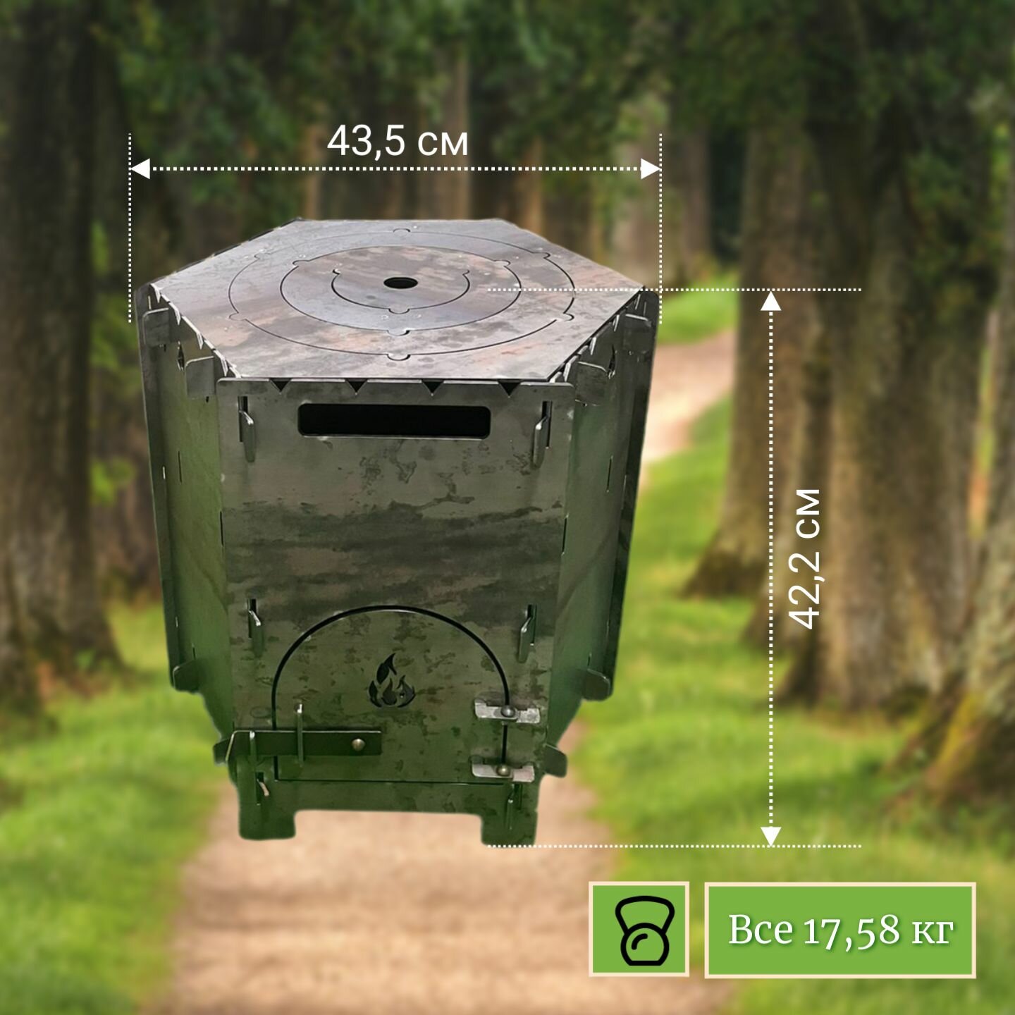 Большая печь мангал без сумки, костровая чаша, плита 4 в 1 разборная для казана, с дверцей сталь 3 мм. Горячая Сталь